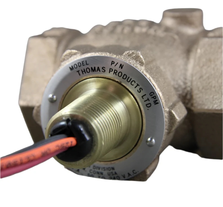 The unit operates with liquid flowing through the housing. When the flow is below the “set point” the liquid flows around the shuttle, as the flow rate increases the magnet-equipped shuttle starts to lift up compressing the spring until the flow rate reaches the set point where the magnet actuates a hermetically sealed reed switch inside the stem. Flow above the set point passes by the shuttle without any issues until the flow rate begins to decrease where the spring begins to push the shuttle back down to resting position until the magnet extends far enough away from the switch causing it to de-actuate. Flow rates below the set point do not affect the unit and do not cause it to actuate. Adjusting the vane permits an amount of substance to bypass the piston entirely, this effectively raises the set point.