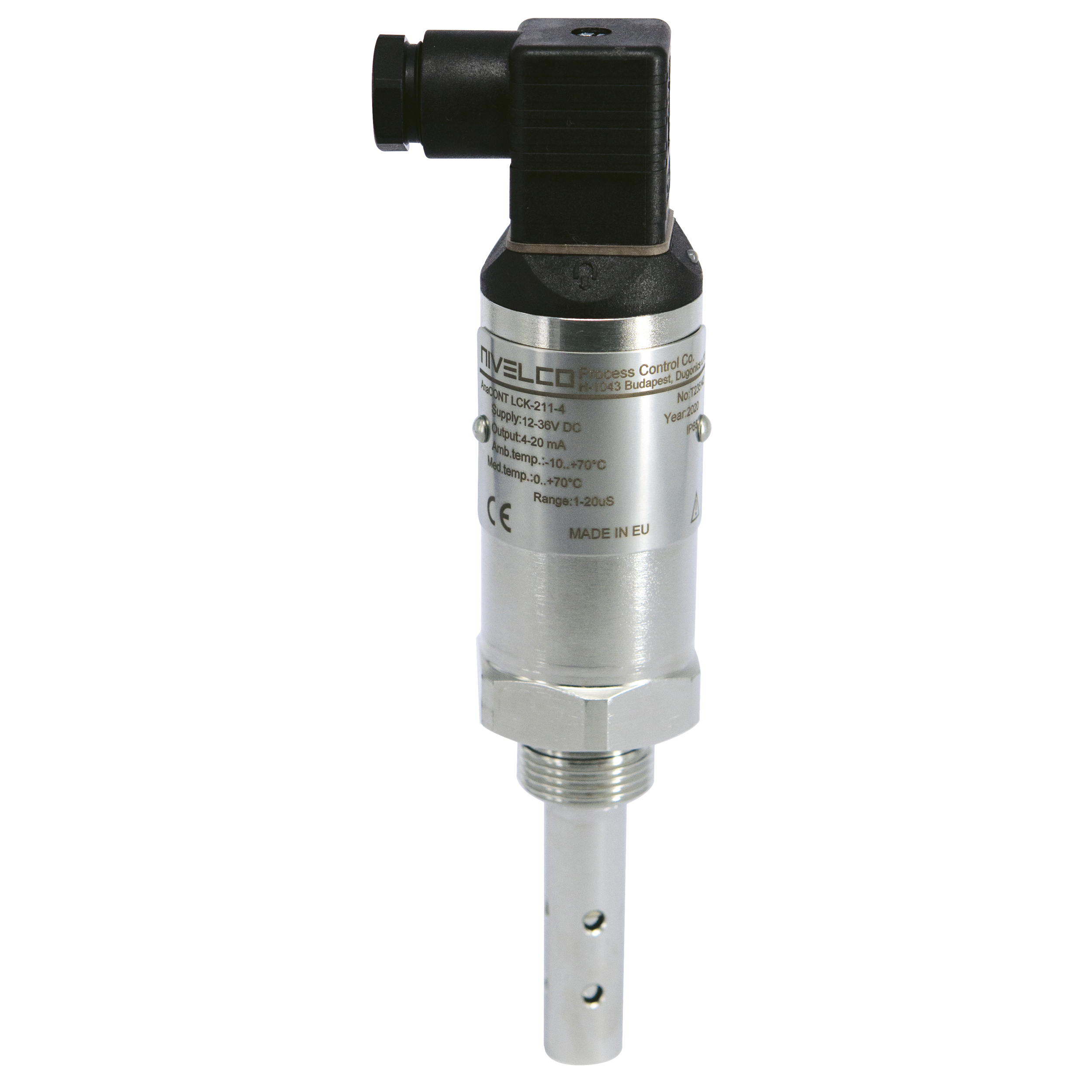 The AnaCONT LCK 2-wire mini compact conductivity transmitter is designed to measure the conductivity of liquids and convert the signal to a 4-20 mA output. It is suitable for measuring clean, non-crystallizable liquids. The wide temperature range and various mounting positions make it possible to use in diverse industrial applications. This device can be mounted directly on tanks, pipelines and machines without console or support. In open-air installations, the instrument should be protected against rain or moisture with a protection shield.